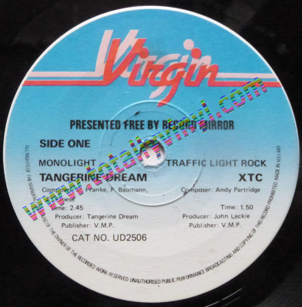 Monolight (Tangerine Dream) / Traffic light rock (XTC) / Whisky and wine (Motors) / Control tower (U-Roy) by Various Artists (Tangerine Dream / XTC / The Motors / U-Roy UK Virgin/Record Mirror N/A stereo 7 inch 70s Reggae Rock New Wave.