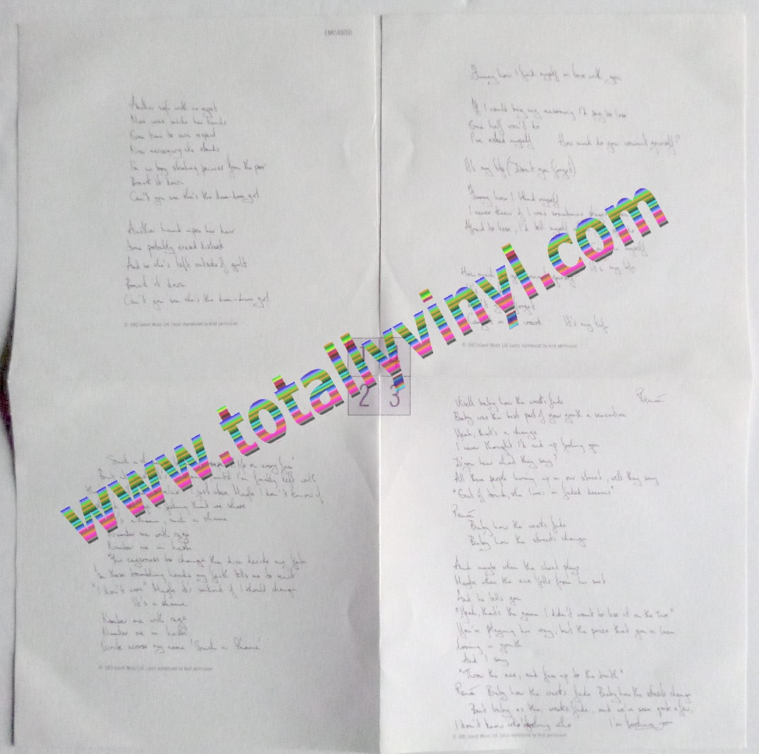 with rare folded lyric sheet insert (printed lyrics to the album originally hand-written by Mark)