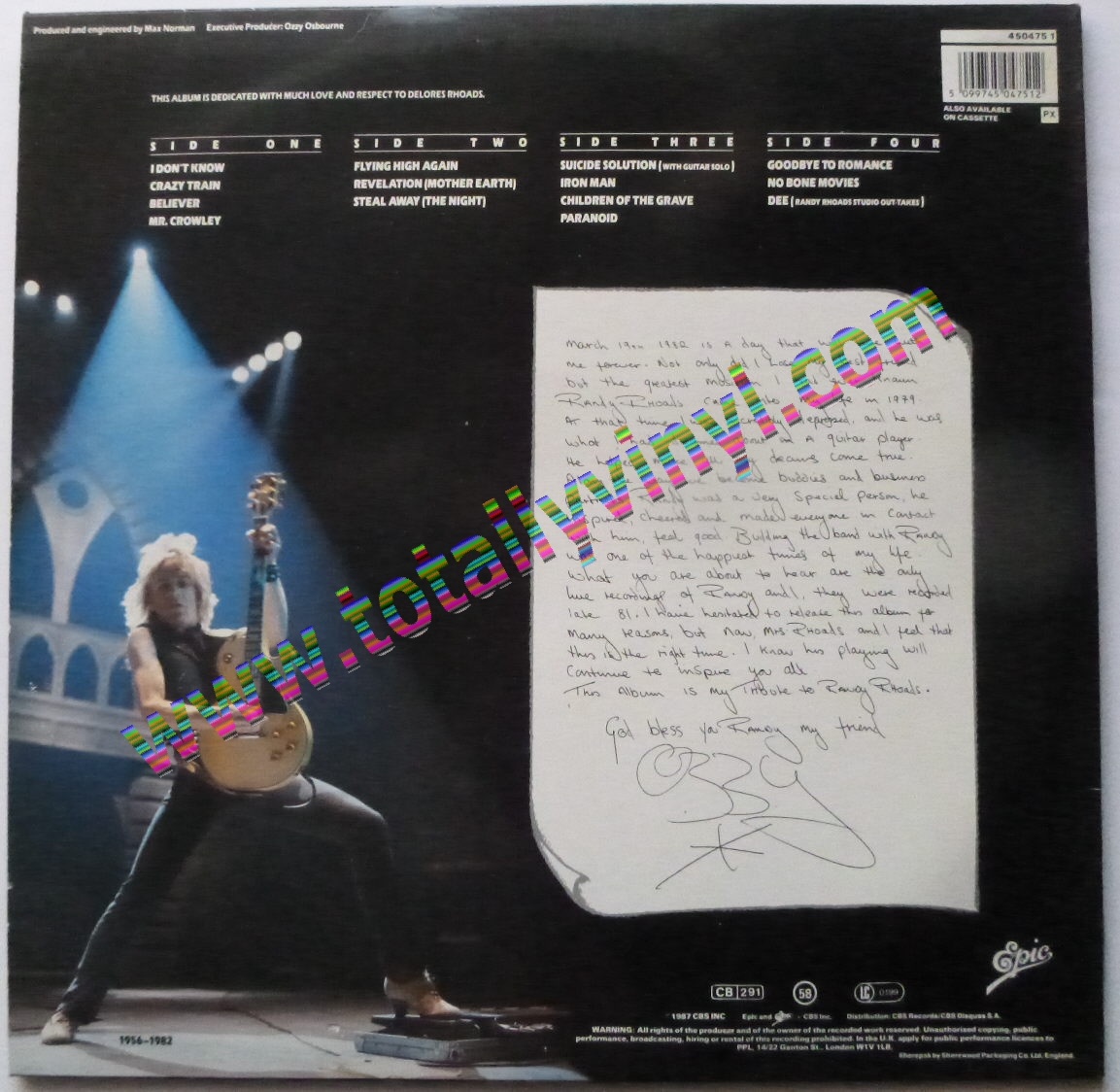 Tribute (to Randy Rhoads) by Osbourne, Ozzy UK Epic 450475 1 stereo Inners LP LP x 2 Poster Special Cover Sticker Heavy Rock Heavy Metal.