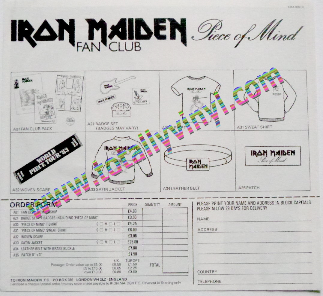 Piece of mind by Iron Maiden UK EMI EMA 8000 stereo Insert LP Special Cover Special Inner 80s Heavy Metal.