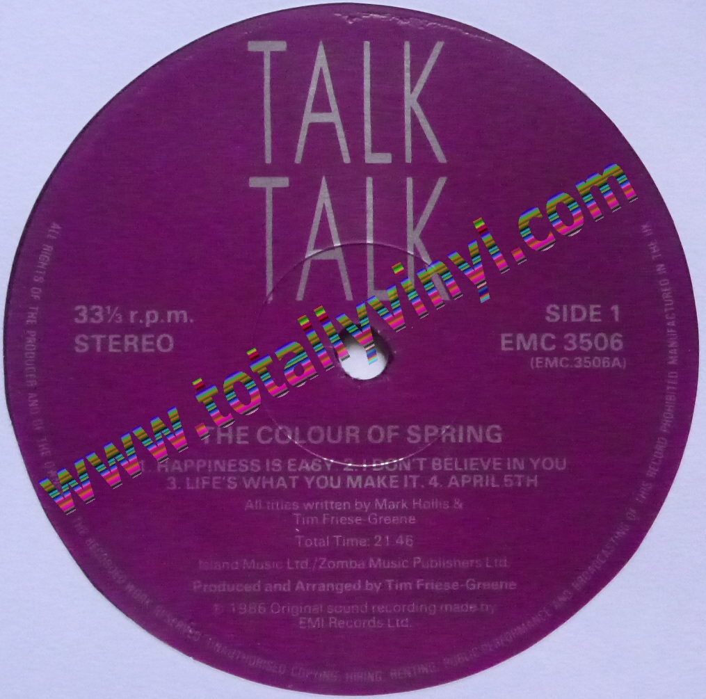 The colour of spring by Talk Talk UK EMI EMC3506 LP, Inner, Special cover Pop, Rock, Synth, 80s.